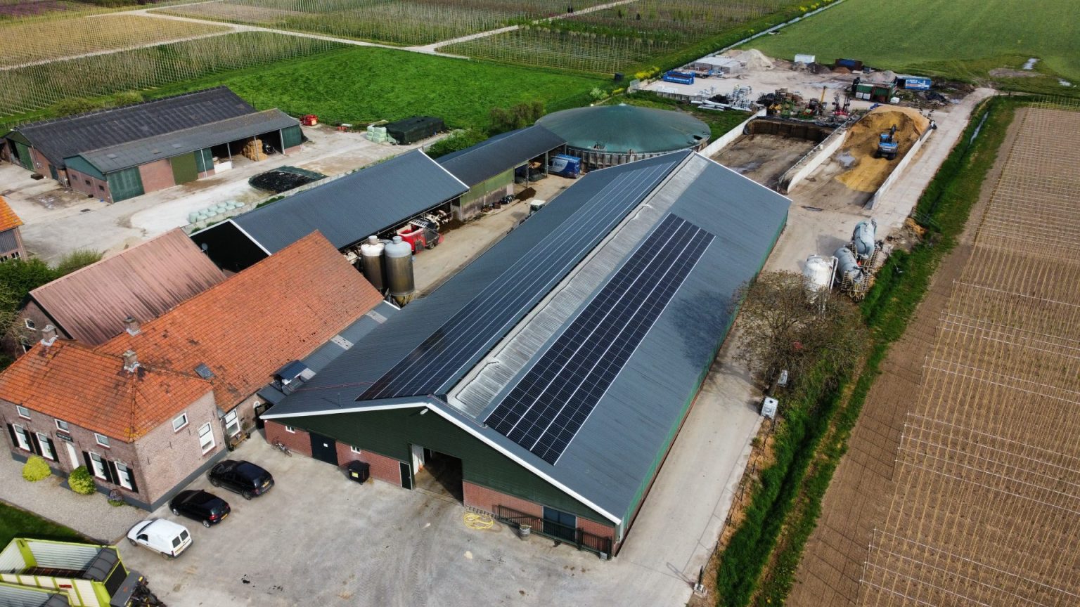 Bij melkveehouderij van Rooijen in Dodewaard hebben we deze mooie installatie van in totaal 300 panelen geplaatst. Naar verwachting zal de installatie jaarlijks 105.837 kWh gaan opwekken.