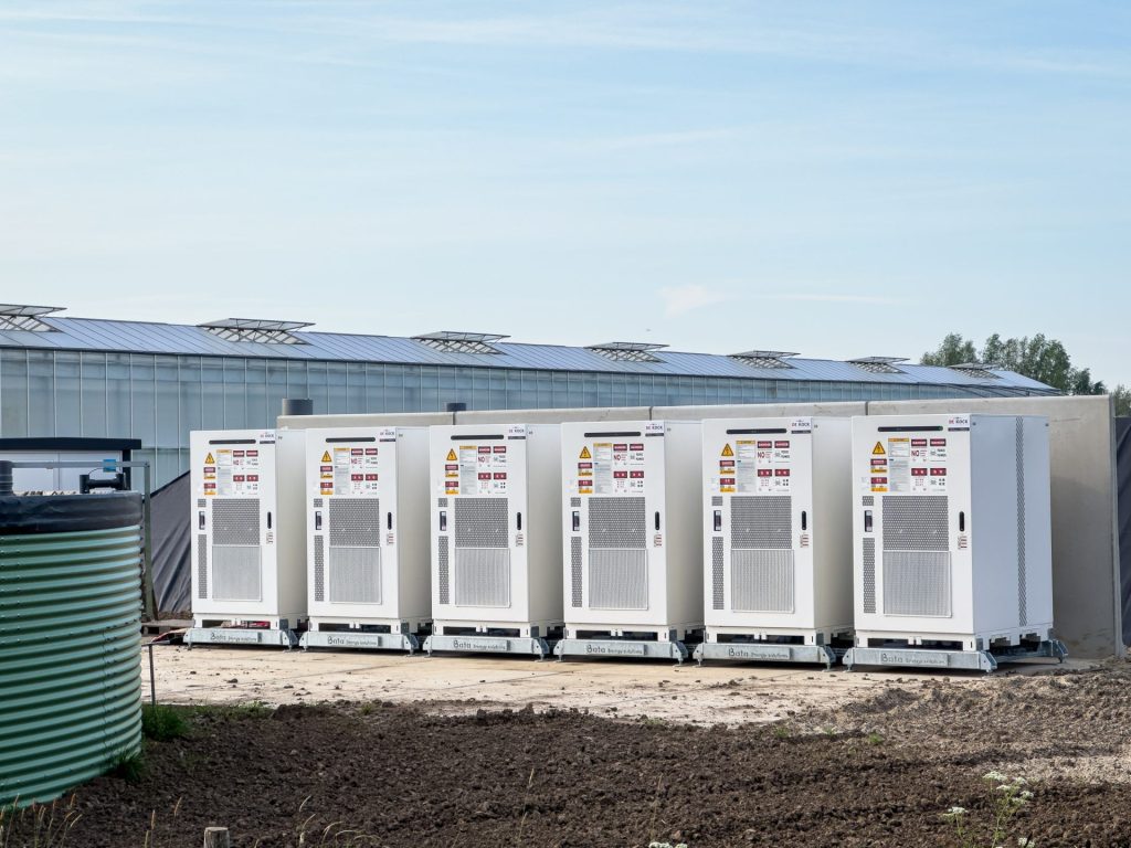 Om het overschot aan zonne-energie lokaal op te slaan, is gekozen voor een opslagsysteem van 5 EOS-units van elk 215 kWh, samen goed voor een totale capaciteit van 1,3 MWh (100% DoD). Deze schaalbare energieopslag stelt Freesia de Heufkens in staat om piekbelasting te dempen, eigen verbruik te maximaliseren en in de toekomst mogelijk deel te nemen aan netbalancering.