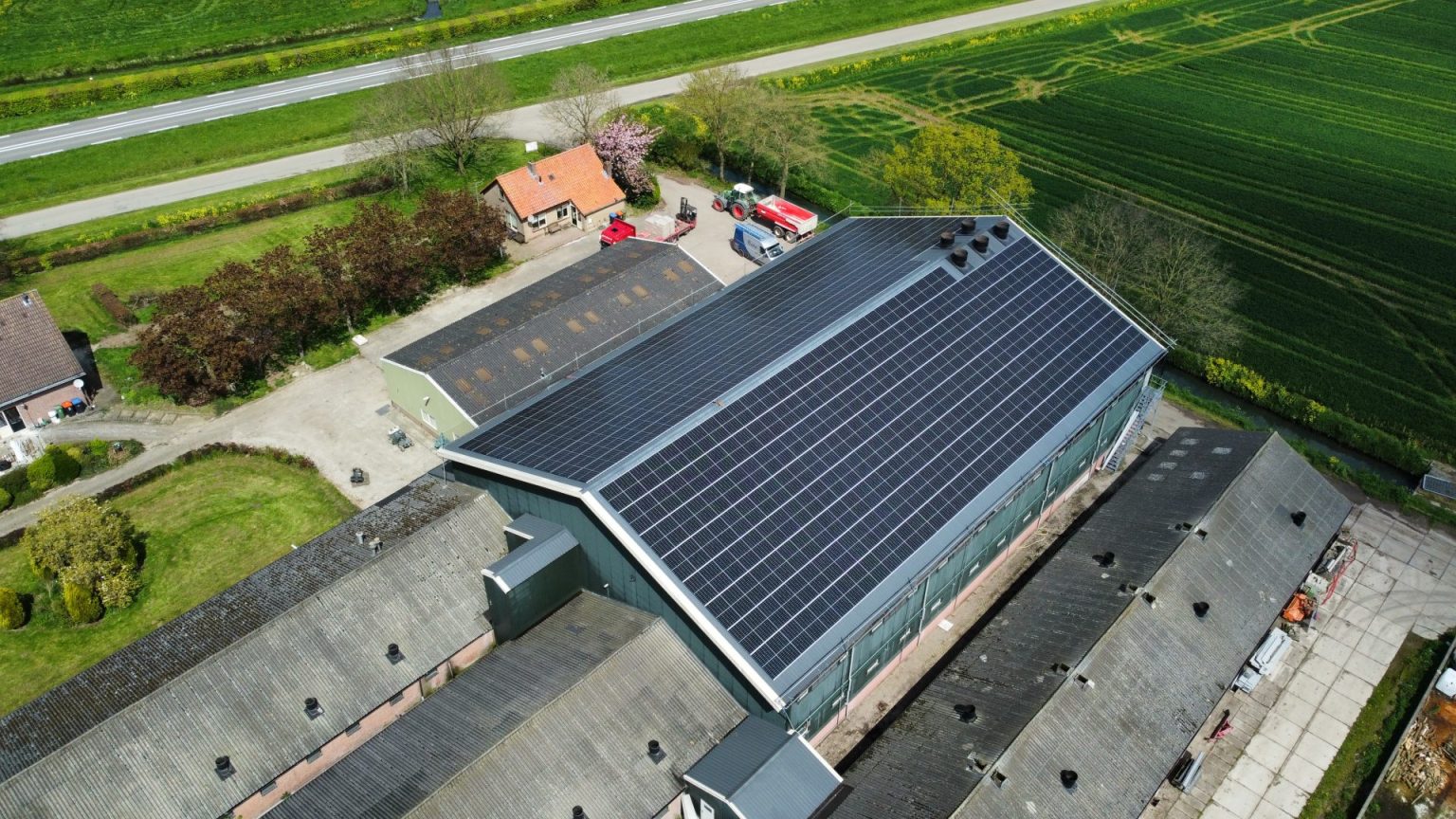 Bij Maatschap Vernooij in Ravenswaaij hebben we deze mooie installatie van in totaal 576 panelen geplaatst. Naar verwachting zal de installatie jaarlijks 208.569 kWh gaan opwekken.