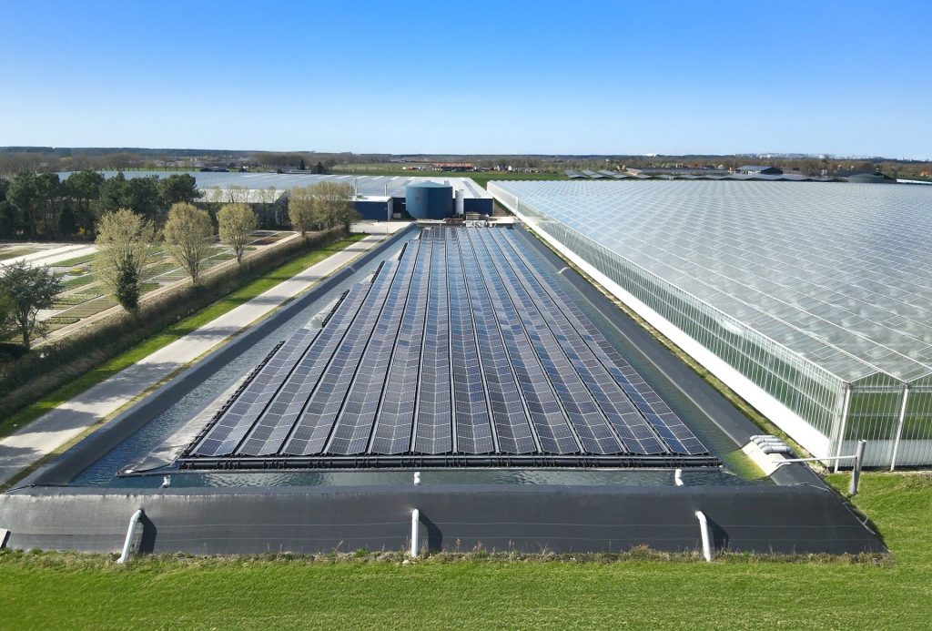 Op het water: 1.254 panelen drijven op het bassin, waar ze profiteren van natuurlijke koeling en geen extra grondoppervlak innemen.